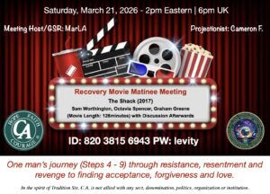 Recovery Movie Matinee Meeting (O) 2.5 Hours – With share-back discussion after the movie.